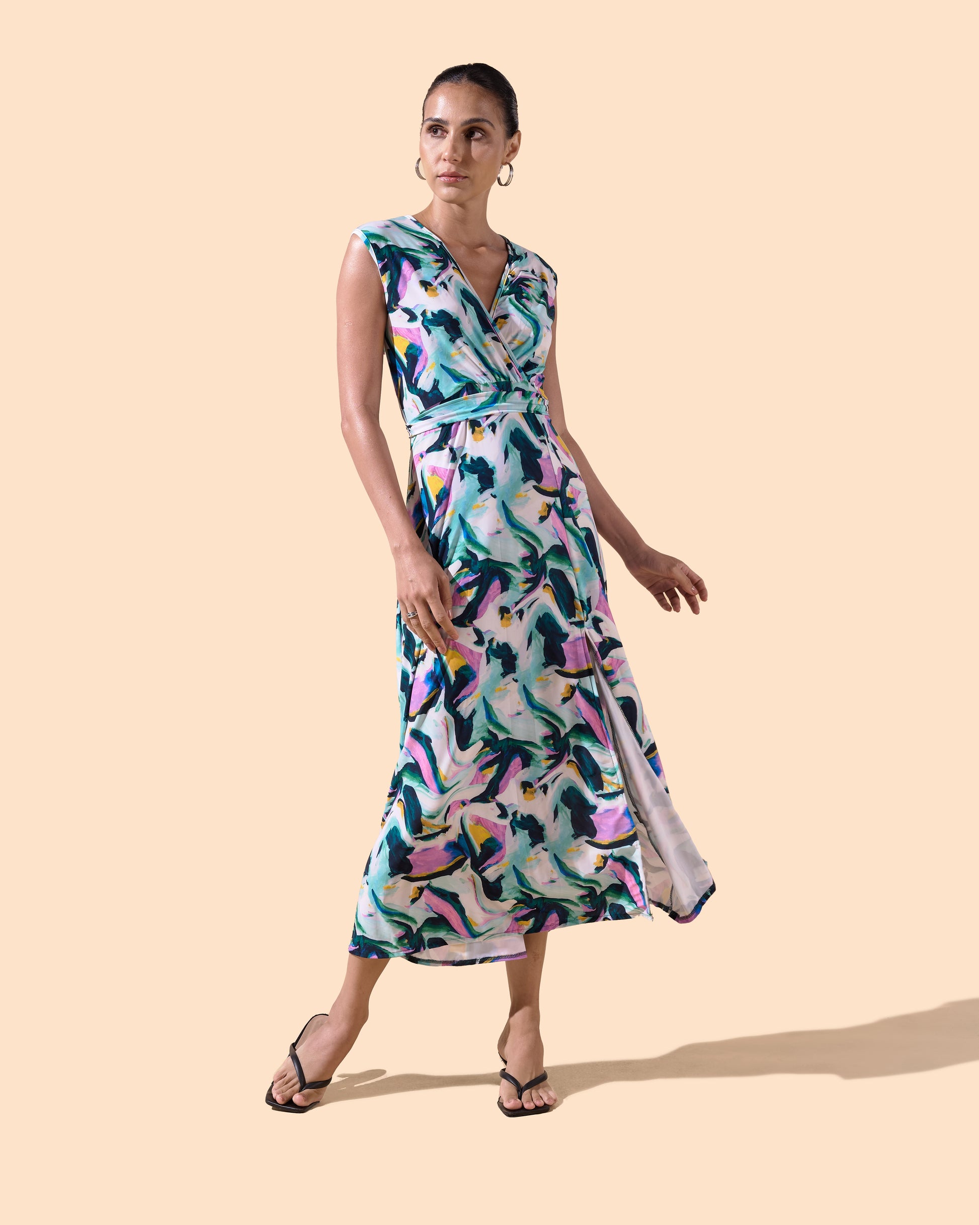 Sa coupe ample et vaporeuse garantit une liberté de mouvement incomparable tout en sublimant votre silhouette. Son col en V et sa couture à la taille légèrement cintrée apportent une touche d’élégance. Sa fente à l’avant dévoile délicatement vos jambes. Un modèle intemporel qui convient à toutes les morphologies. Vendue avec sa ceinture.