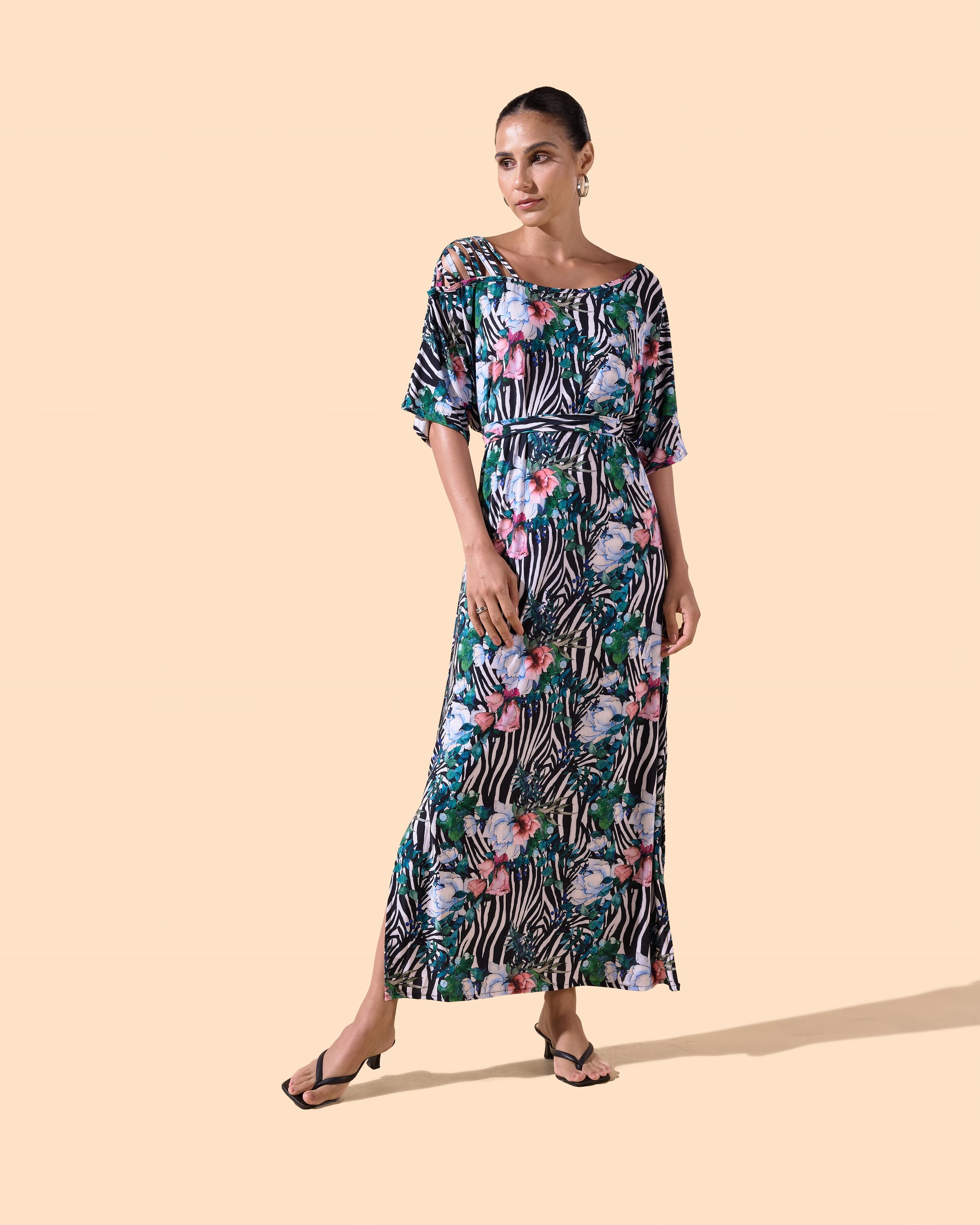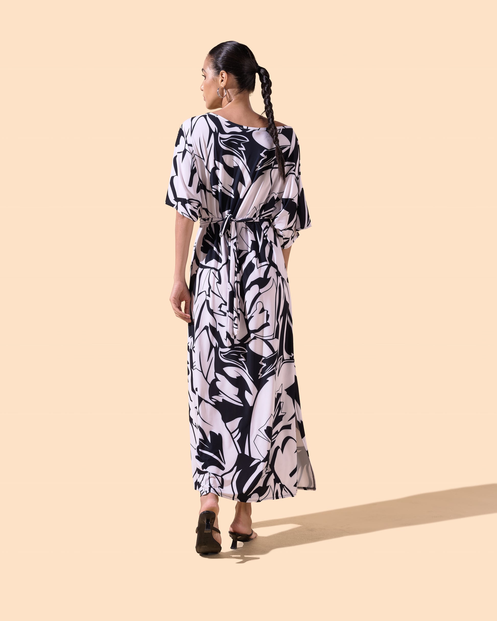 La robe Brisa est la version longue de la robe Alzira, idéale pour se sentir à l'aise tout en étant élégante. Son col bateau dégagé et sa coupe ample flattent toutes les morphologies.