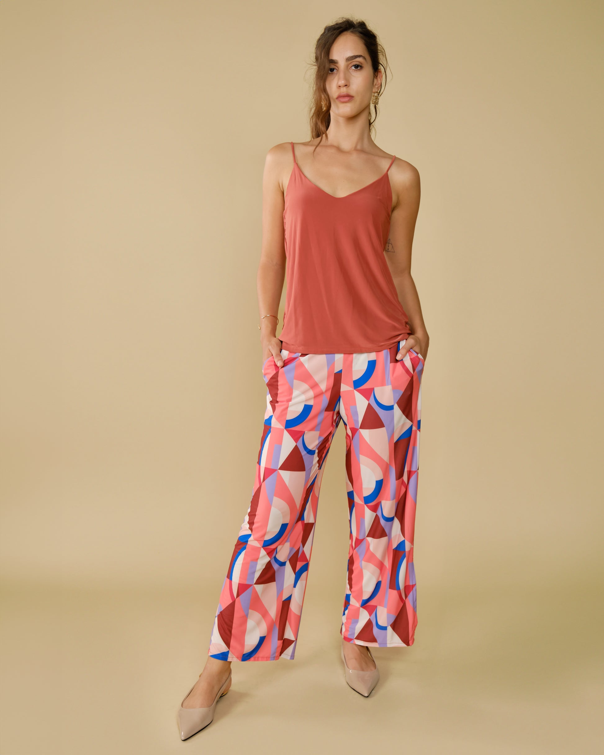 Forme toute simple et efficace du top Tabato. Large décolleté semi-arrondi, coupe fluide, droite et bonne longueur. Le détail charme : une belle échancrure dos. Il se porte absolument avec tout et pour toutes les occasions. En terracotta, couleur phare de votre été, exclusivité Osanna !