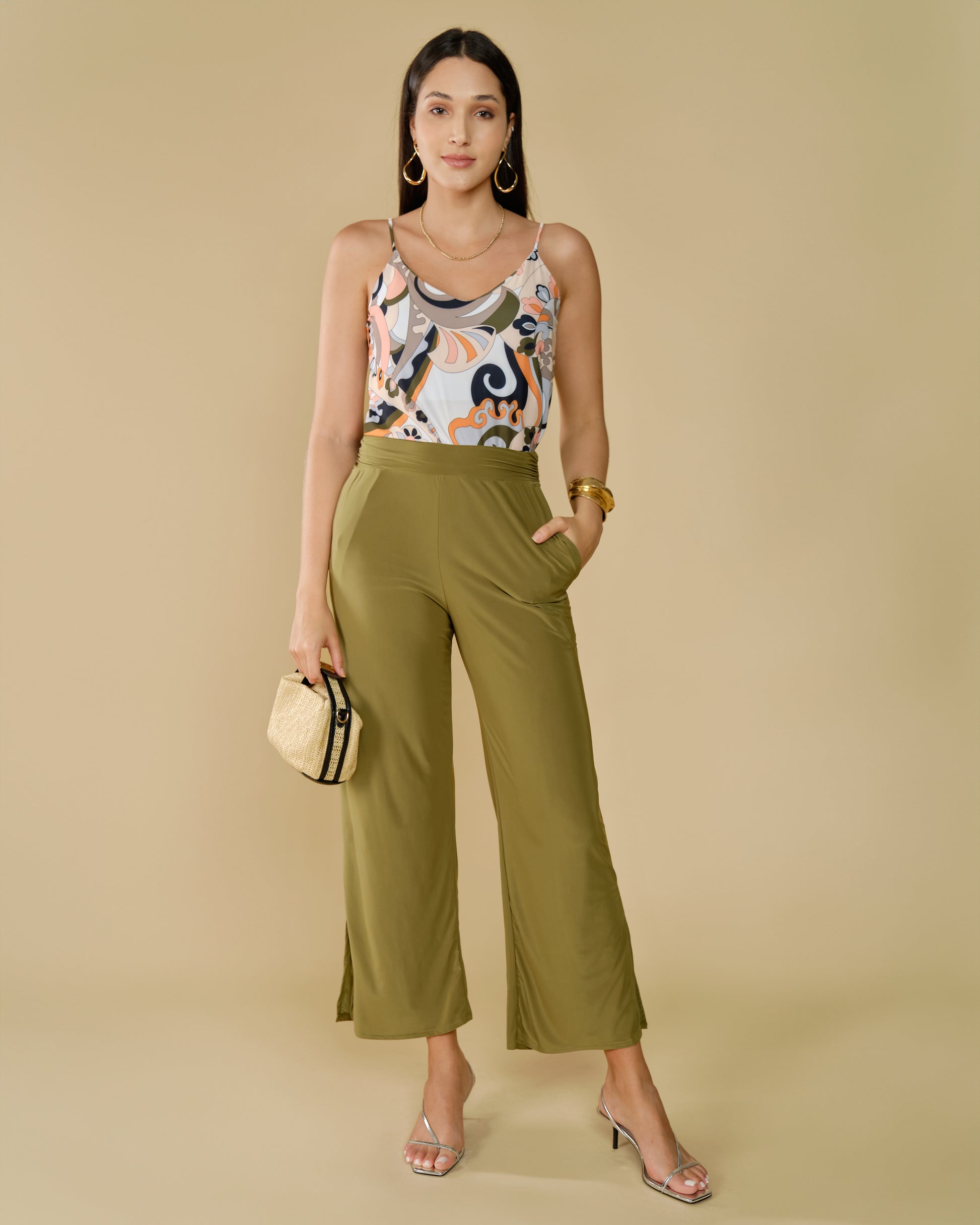 Idée Look : Portez-le avec un pantalon noir et des sandales argent.